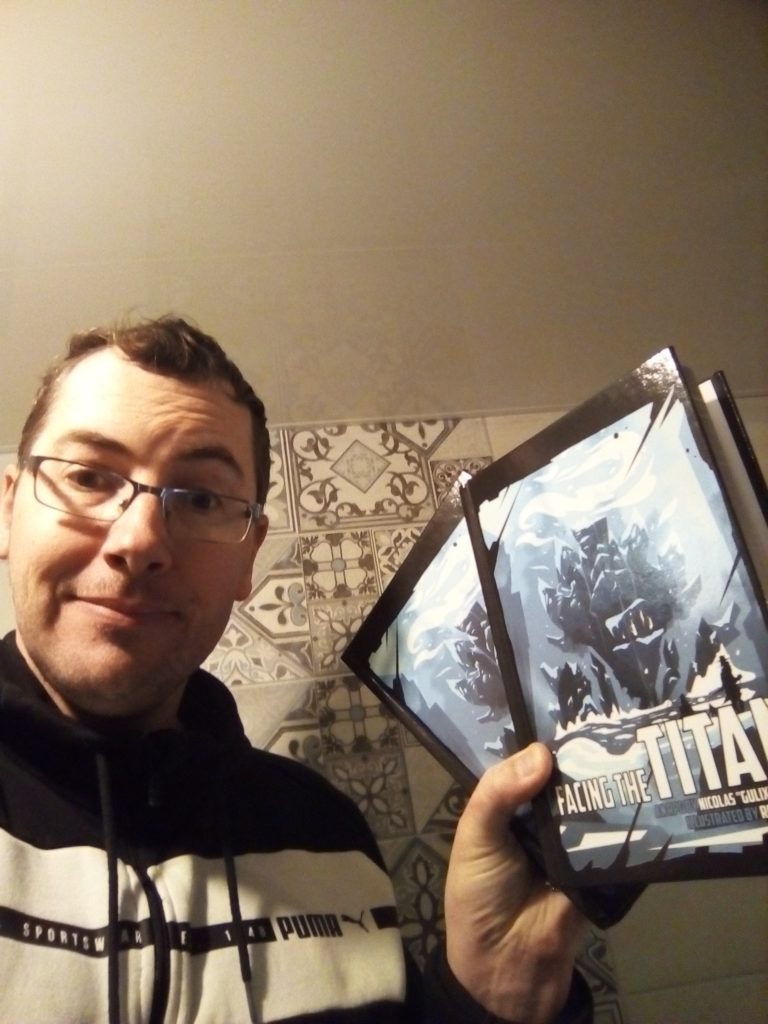 La prochaine update n'est pas datée, et concernera l'édition Kickstarter, avec la couverture ci-dessus. En attendant, vous pouvez me suivre sur Twitter, via notamment le hashtag #facingthetitan. N'hésitez pas à me tagger ou à l'utiliser si vous recevez vos livres et les mettez en scène !
